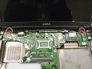 Открутите два винта, удерживающие экран, с помощью биты PH0, затем поднимите экран вверх.