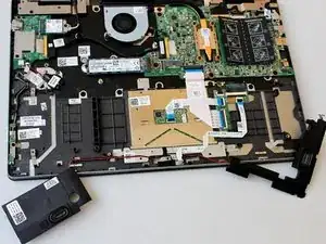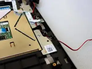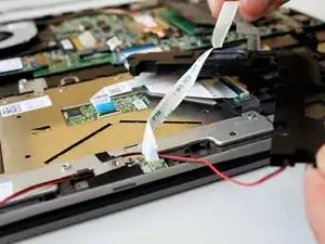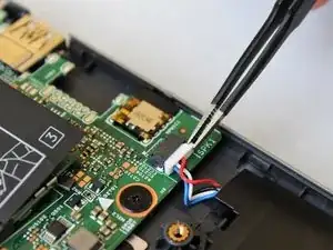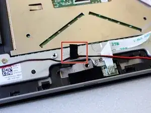 Удалите липучку, фиксирующую провод динамика, и извлеките динамики из устройства.