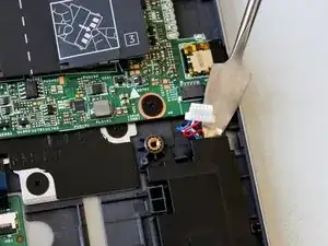 На правом блоке динамика снимите штырьковой разъём с помощью пинцета.
