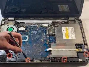 С помощью крестовой отвертки №000 выкрутите три 5-мм винта, крепящие жесткий диск к ноутбуку.