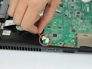 Дотянитесь под дочернюю плату и отключите разъём.