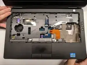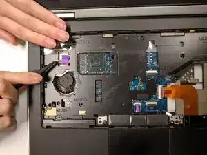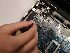 Возьмитесь за шлейф и потяните его в сторону тачпада, чтобы отсоединить.