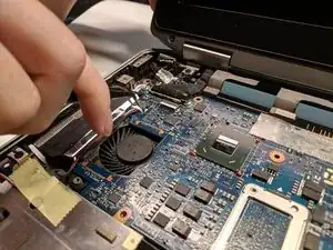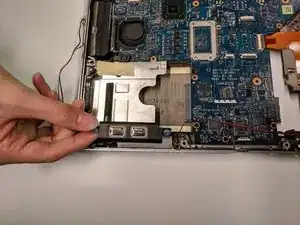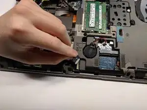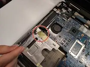 Отсоедините шлейф динамика. Потяните его в сторону тачпада, чтобы отключить.