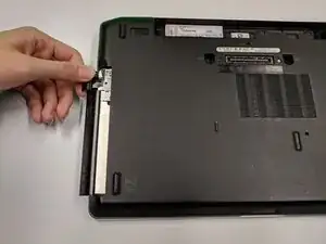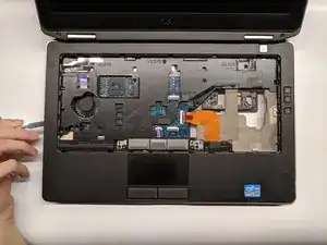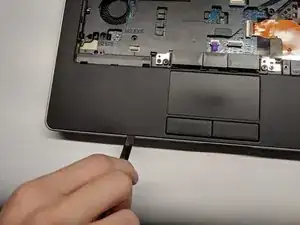 Отсоедините разъем шлейфа тачпада, сдвинув шлейф к передней части ноутбука.