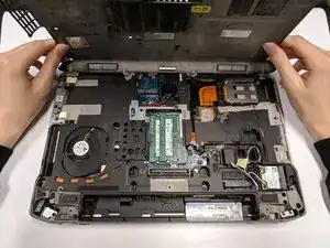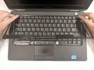 Перемещайтесь вдоль краев рамки клавиатуры, освобождая все защелки от основания ноутбука.