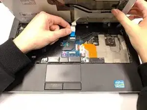Отсоедините шлейф тачпада, аккуратно потянув его вверх.