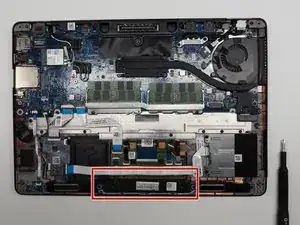 Удалите один винт Phillips по 4 мм, крепящий нижний левый угол аккумулятора.
