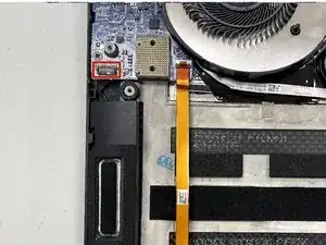 Удалите второй динамик и оставшийся кабель, соединяющий его с первым динамиком, из ноутбука.