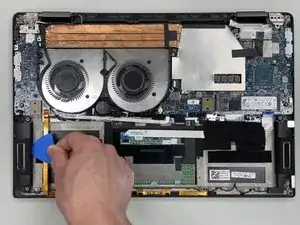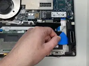 Аккуратно подденьте пластиковым медиатором между вентилятором и межсоединительным кабелем.