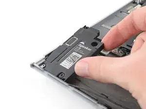 Используйте отвертку Torx T5, чтобы извлечь два 2 мм длинных винта, фиксирующих каждый динамик (всего четыре).