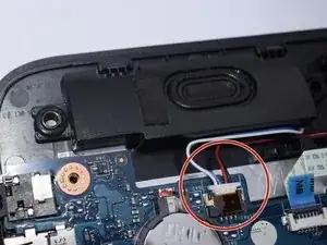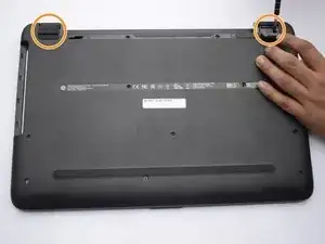 Осторожно поднимите верхнюю часть нижней панели ноутбука, чтобы открыть доступ к динамикам.