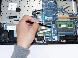 Осторожно отсоедините разъём ЖК‑экрана с помощью пластикового медиатора.