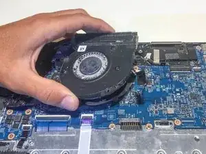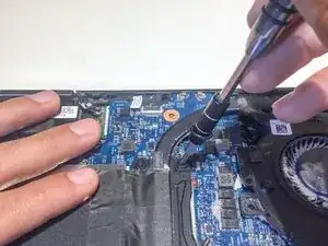 Используя отвертку Philips #0, снимите три винта M2x4, расположенные вокруг охлаждающего вентилятора, как показано на изображении.