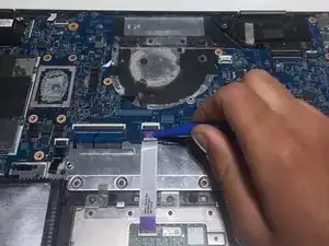 Отсоедините шесть кабелей с помощью синей лопаточки для вскрытия.
