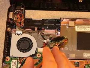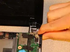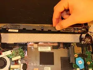 Найдите провод динамика и его разъём на системной плате. Выдавите его прямо наружу пальцами.