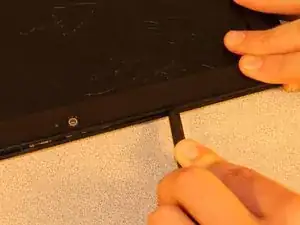 Используйте лопатку, чтобы поддеть рамку экрана от самого экрана.