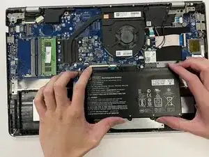 Поднимите отсоединённый аккумулятор вверх, чтобы вынуть его.