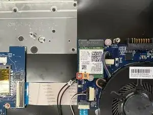 Удаление этого винта вызовет подъём модуля WLAN под углом.