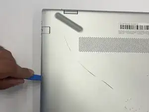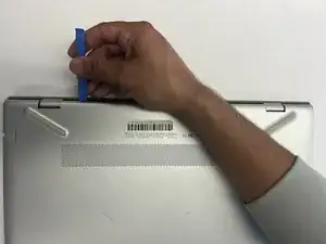 Начинайте поддевать в областях ближе к задней части ноутбука (вблизи петель дисплея), прежде чем переходить к областям, ближе к передней части ноутбука (далее от петель дисплея).
