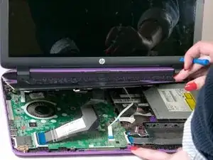 С помощью инструментов для открытия отделите клавиатуру от ноутбука, подденьте ее по бокам.