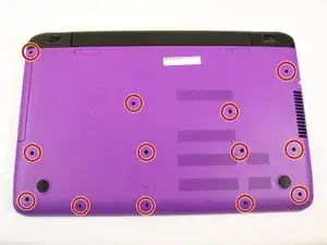 С помощью отвертки Phillips #1 удалите тринадцать винтов на задней части ноутбука.