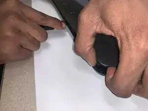 Проведите медиатором по корпусу панели, пока зазор не станет достаточным для использования пальцев.