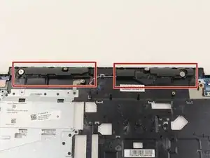 Используйте крестообразную отвертку Phillips №0, чтобы выкрутить два винта 3,5 мм, крепящие динамики к верхней части корпуса ноутбука.