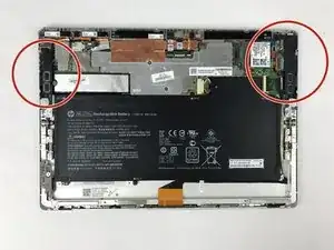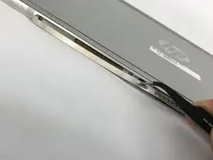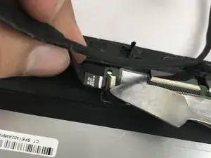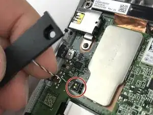 Отсоедините соединительный кабель экрана и аккумулятора. Используйте лопатку, чтобы открыть слой клея и аккуратно отодвинуть его.