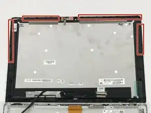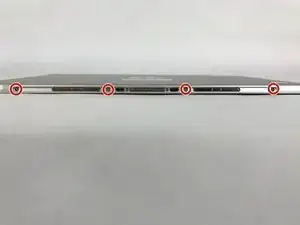 Для снятия экрана требуется разблокировать всю систему защёлок, а также выкрутить 4 винта Phillips M1.5x2.7.