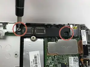 Каждый динамик закреплён двумя винтами PM2.0×3.4, как показано. Используйте Phillips #0, чтобы выкрутить все четыре винта.