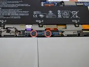 Удалите две фиолетовые ленты с надписью «Audio» в верхней части платы аудиопорта с помощью пинцета или прочного пластмассового инструмента для вскрытия.