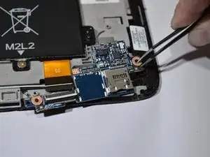 Удалите жёлтую ленту с надписью «SD» в левом углу платы SD-порта с помощью пинцета или прочного пластмассового инструмента для вскрытия.