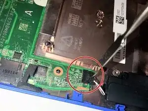 На этом изображении показан металлический лопатка. Вместо этого используйте пластиковый инструмент для открытия, чтобы не повредить компоненты и избежать проведения электричества.