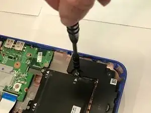 Используйте отвертку Philips #0, чтобы удалить одиннадцать видимых винтов 5 мм на задней панели ноутбука.