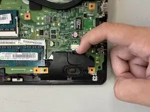Отключите динамик, вытащив разъем правого динамика из материнской платы с помощью ногтя.