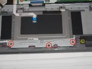 Снимите три винта Phillips по 3 мм, которые фиксируют крепление сенсорной панели к корпусу.