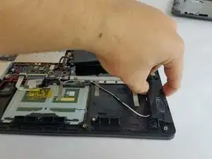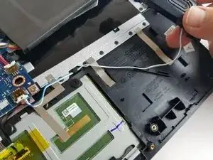 В этом руководстве ремонт выполняется при перевёрнутом ноутбуке, поэтому левый динамик находится справа от зрителя и наоборот. Для простоты мы будем называть динамики исходя из их текущего положения относительно зрителя.