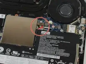 Отключите кабель батареи от разъёма на материнской плате, аккуратно потянув его в сторону батареи.