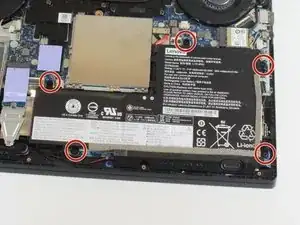 Используйте отвертку с крестообразным наконечником, чтобы удалить пять винтов по 4 мм, удерживающих батарею на месте.