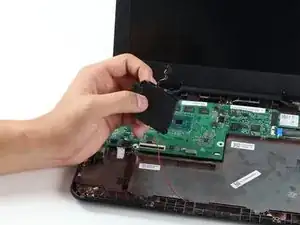 Поднимите клавиатуру с задней панели, обнажив материнскую плату и аккумулятор.