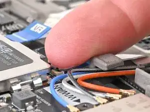 У многих таких разъёмов есть небольшая метка, указывающая, какая сторона разъёма должна быть сверху. Чтобы подключить обратно, выровняйте разъём и используйте лопаточку или чистый ноготь, чтобы полностью вдавить его в гнездо.
