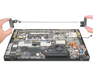 Схватите заднюю крышку вдоль кромки с петлёй экрана и медленно поднимайте, чтобы освободить оставшиеся защёлки.