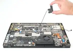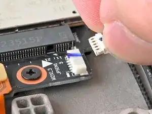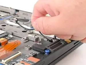 Схватите ногтями разъём антенны WWAN за кромку у задней части и аккуратно потяните разъём из гнезда (обозначено «JPSEN2»).