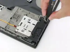 Отсоедините кабель динамика от материнской платы, используя пластиковый инструмент для вскрытия.