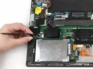Вставьте плоский конец лопатки между нижней крышкой и остальной частью ноутбука, начиная с нижнего левого угла.