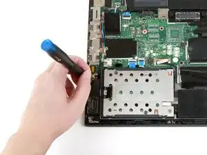 Используйте крестообразную отвёртку Phillips #1, чтобы вывернуть один 5 мм винт, фиксирующий динамик слева от SSD.
