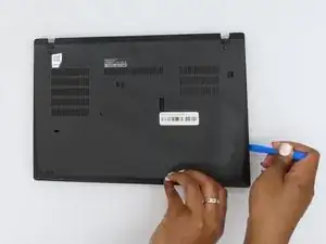 Вставьте инструмент для открытия iFixit в зазор между нижней крышкой и шасси.