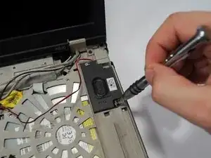 Удалите два винта Phillips #0 размером 3,5 мм из динамика.