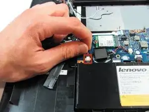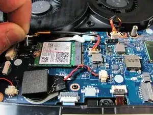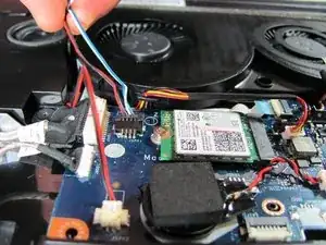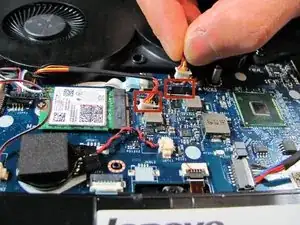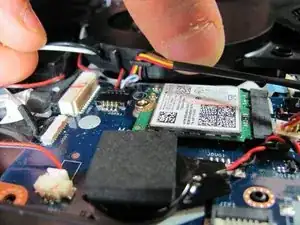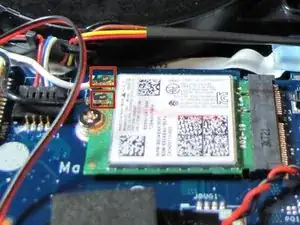 Снимите чёрный и белый антенные кабели с беспроводной карты.