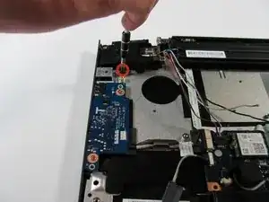 Крестовой отвёрткой Philips #1 отвинтите по одному винту 2,5 мм, удерживающему каждый боковой динамик в ноутбуке.